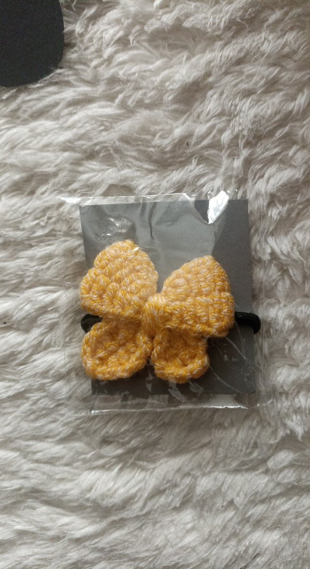 Bohem tarzda sarı nakışlı fiyonk detaylı çocuk saç bandı. Yumuşak ve renkli bir aksesuar.