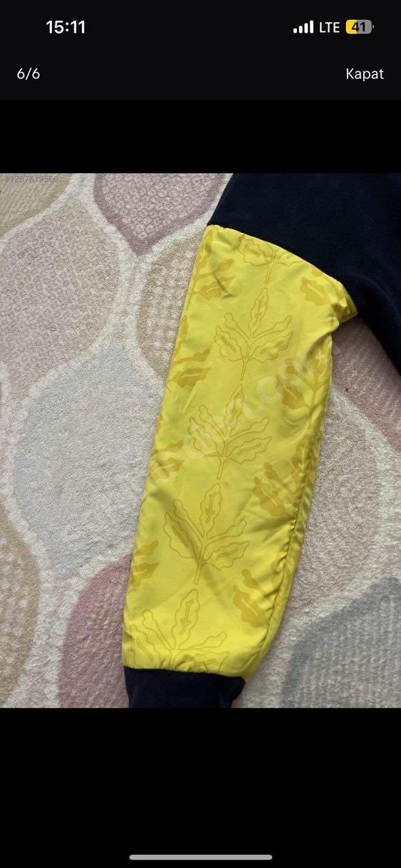 Bu erkek sweatshirtü, kapüşonlu yaka ve uzun kollu olup, kollarda sarı nakış detayları bulunur. Sentetik kumaştan yapılmış, velcro detaylı ve normal kesimdir.