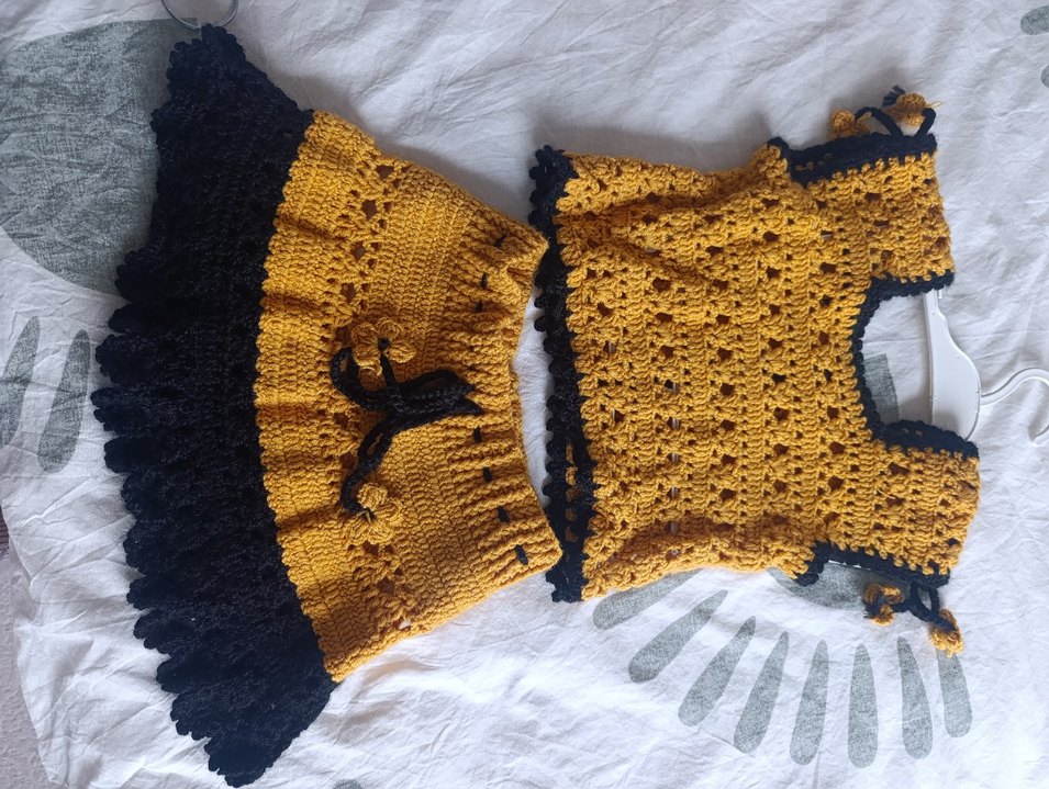 Sarı Nakışlı Örgü Bebek Kız Takımı
