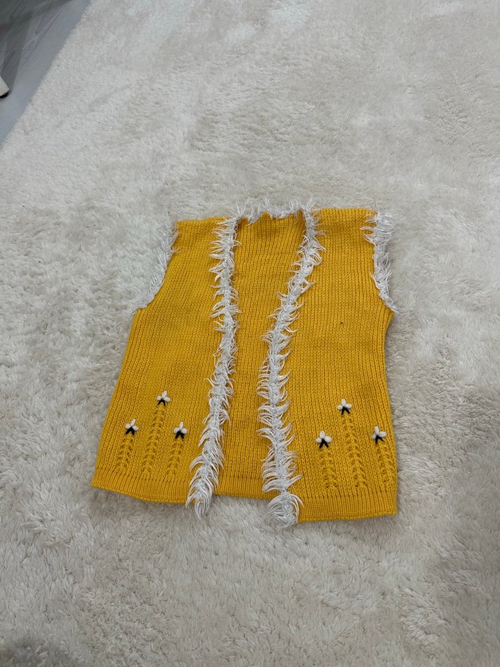 Sarı Nakışlı Örgü Kız Yeleği Kapüşonlu