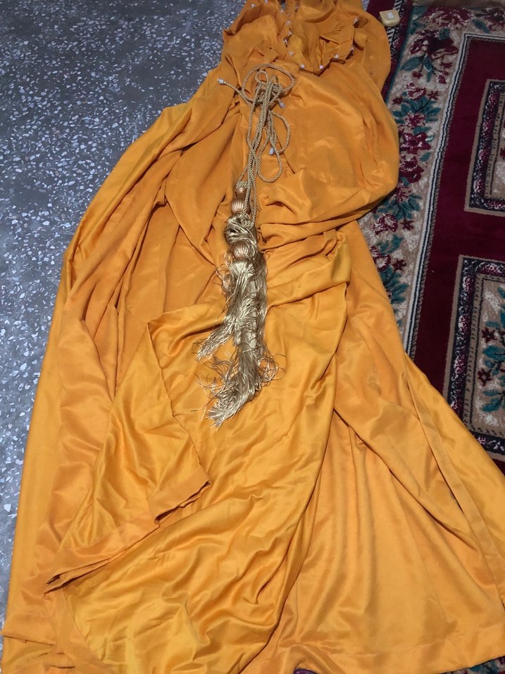 Sarı renkli, nakışlı, drapeli bohem tarzı fon perde Boy 255 En 100 İki fon perde 6600 fiyat