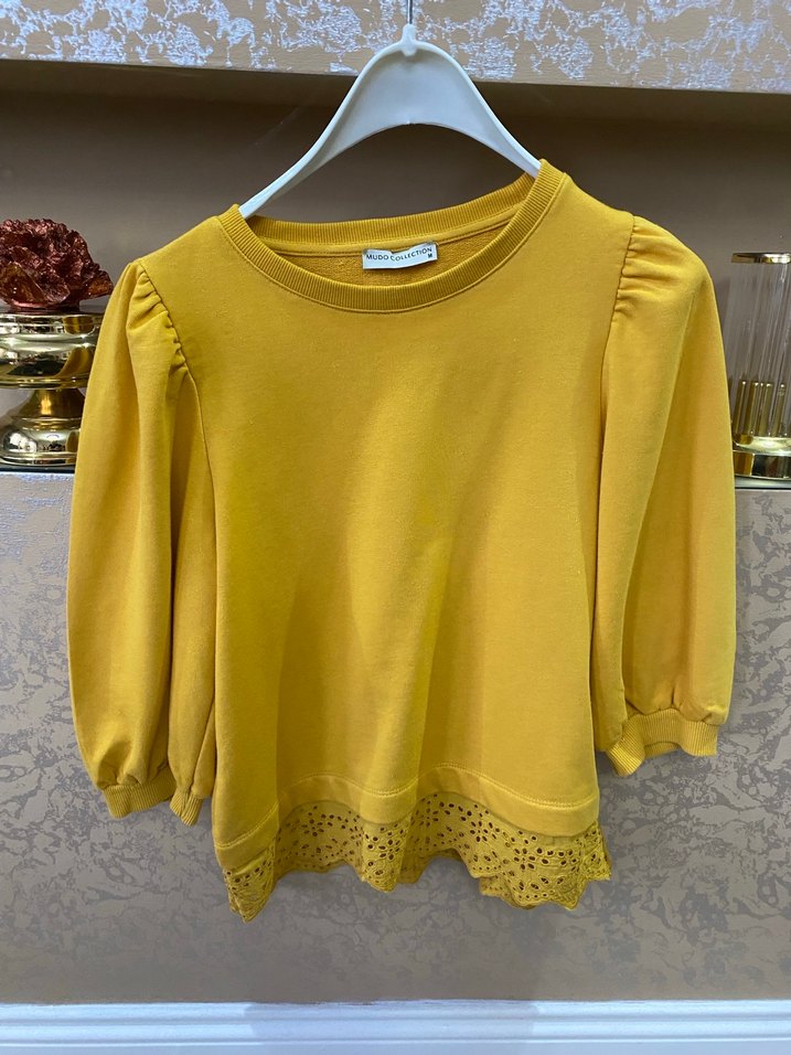 Sarı Nakışlı Uzun Kollu Bluz sweat