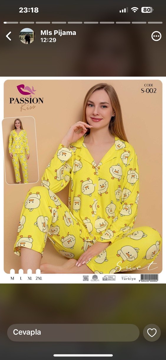 Sarı pastel tonlarda, baskılı desenli, uzun kollu ve bol kesim kadın pijama takımı. Kısa boy ve rahat kesimiyle konfor sağlar. Düğmeli ve yakalı detaylı.