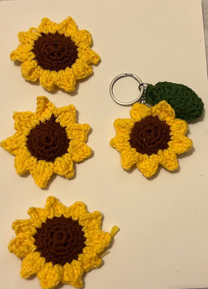 Sarı Örgü Ayçiçeği Anahtarlık ve motif toplu sipariş alınır