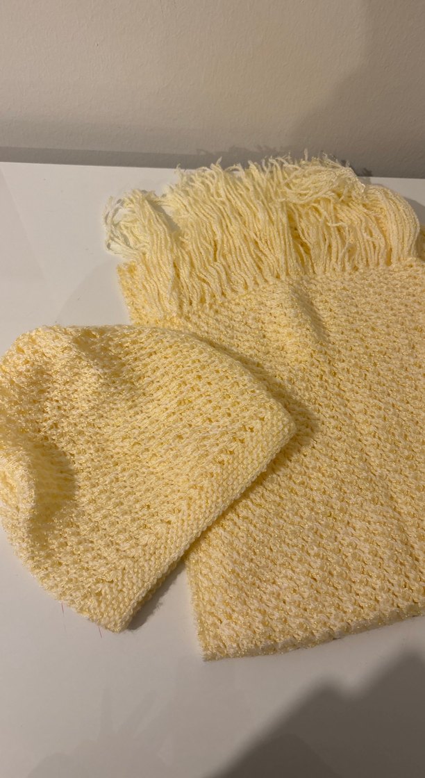 Yumuşak dokulu sarı örgü bere ve atkı seti. Atkıda püskül detayları bulunur. Bohem tarzda sade tasarım.