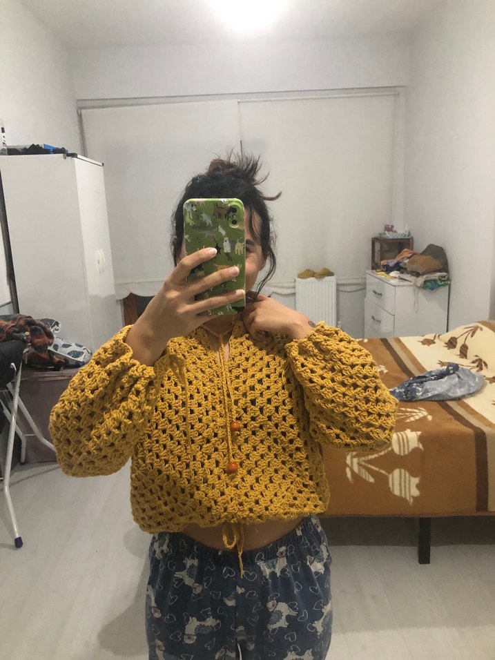 El örgüsüdür . Kendim ördüm. Boyum 155 kilom 48 duruşu bu şekilde . Kolları ve beli bağlamalı ama isterseniz ipleri çıkarıp salaş olarak da kullanabilirsiniz.