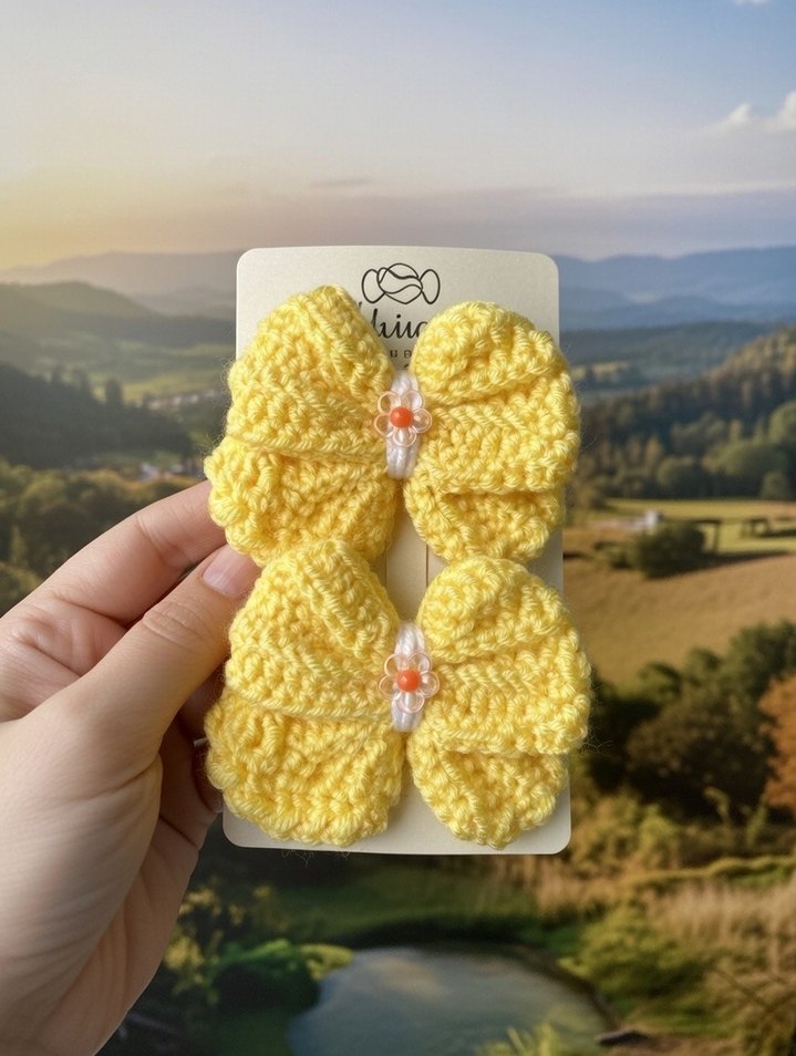 Sarı Örgü Çiçekli Çocuk Toka Seti