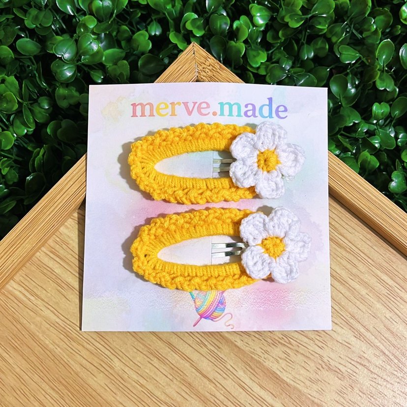 Sarı Örgü Çiçekli Çocuk Toka Seti