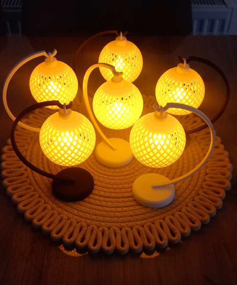 Örgü desenli sarı pilli masa lambaları, sıcak ve huzurlu bir ışık yayar. Yuvarlak taban ve ayarlanabilir esnek boyun özelliklerine sahiptir.