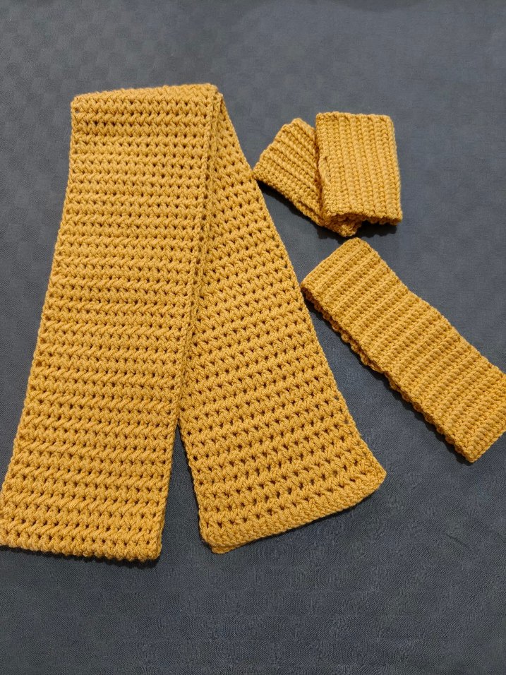 Sarı renkli, örgü atki eldiven ve kulak bandiyla birlikte istenilen renkte yapilir el emegi urun