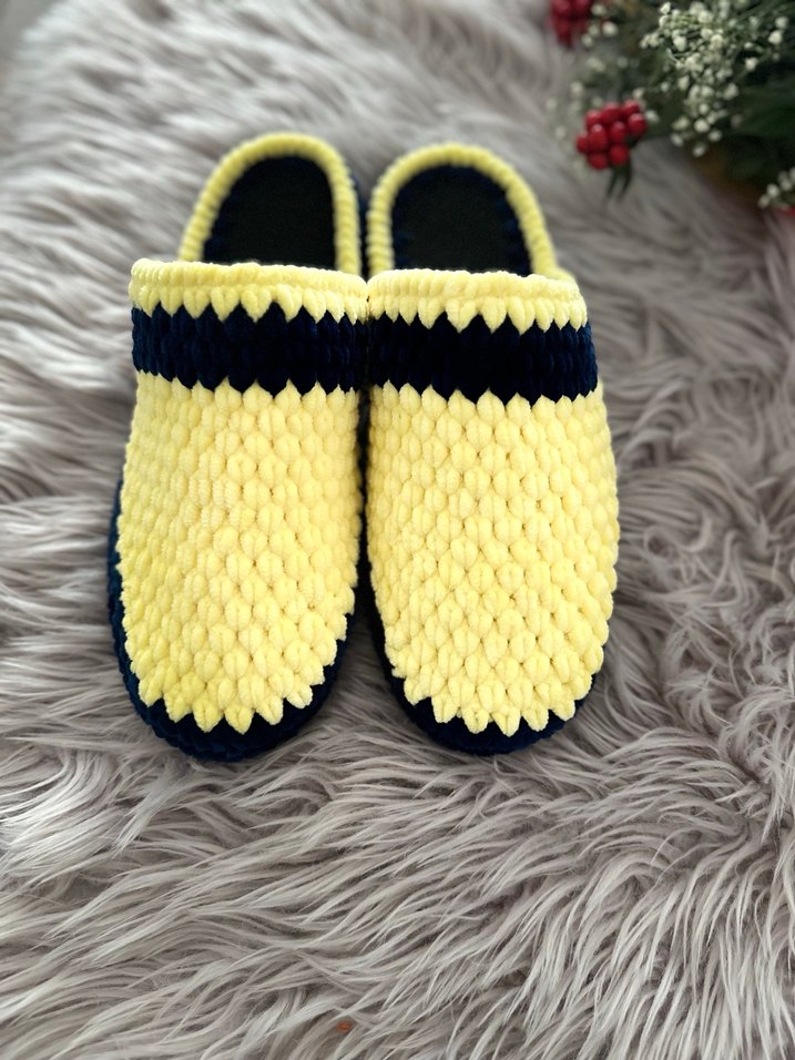 Sarı örgü yapıya sahip, konforlu ve günlük kullanıma uygun kadın ev terliği. Düz ve renkli tasarımıyla sade bir şıklık sunar. 42 no sarı lacivert
