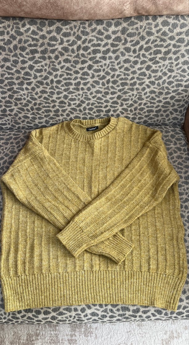 Sarı renkli, yuvarlak yaka ve uzun kollu örgü kadın kazak, rahat kesimi ve yumuşak dokusuyla günlük kullanıma uygundur.