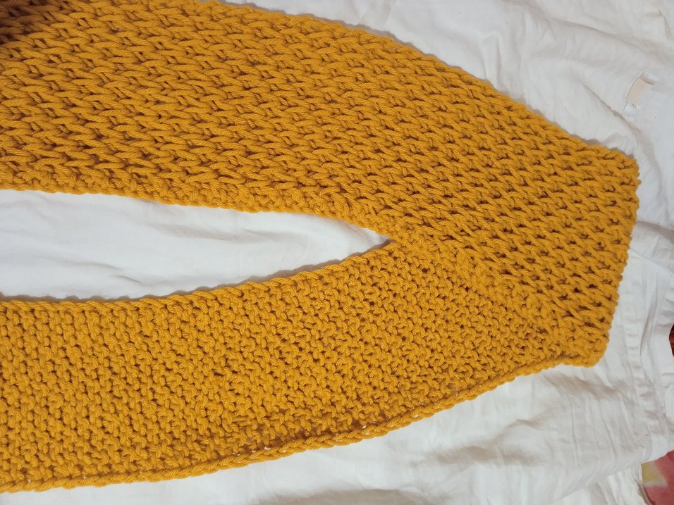 Sarı renkte, örgü dokulu, rahat ve bohem tarza sahip kadın şalı. Parlak görünümlü, sade ve temel tasarım.boyu 2.000 metre