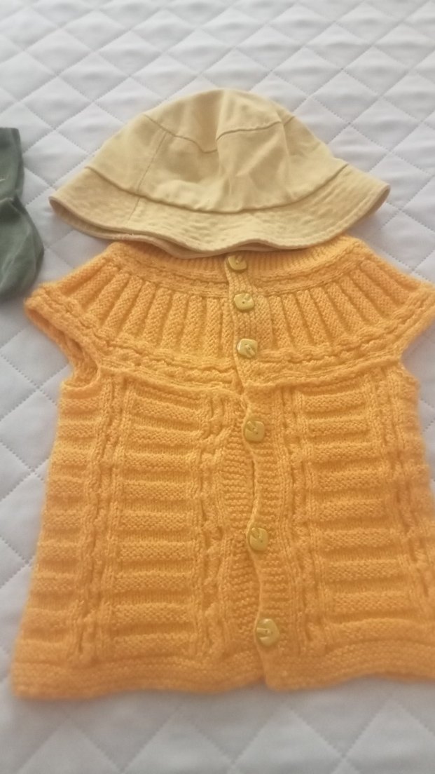 Pastel sarı renkte, kolsuz, bohem stil örgü kız çocuk hırka. Düğmeli ve rahat kesimlidir. elimde kalan son 0-9 ay ürünlerdir. deforme yoktur.