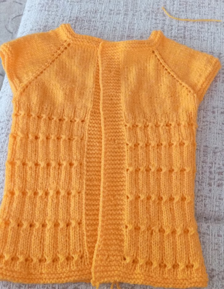Parlak sarı renkte, kolsuz ve vücuda oturan, bohem tarzda örgü kız erkek yeleği yeni üründür el örgüsüdür