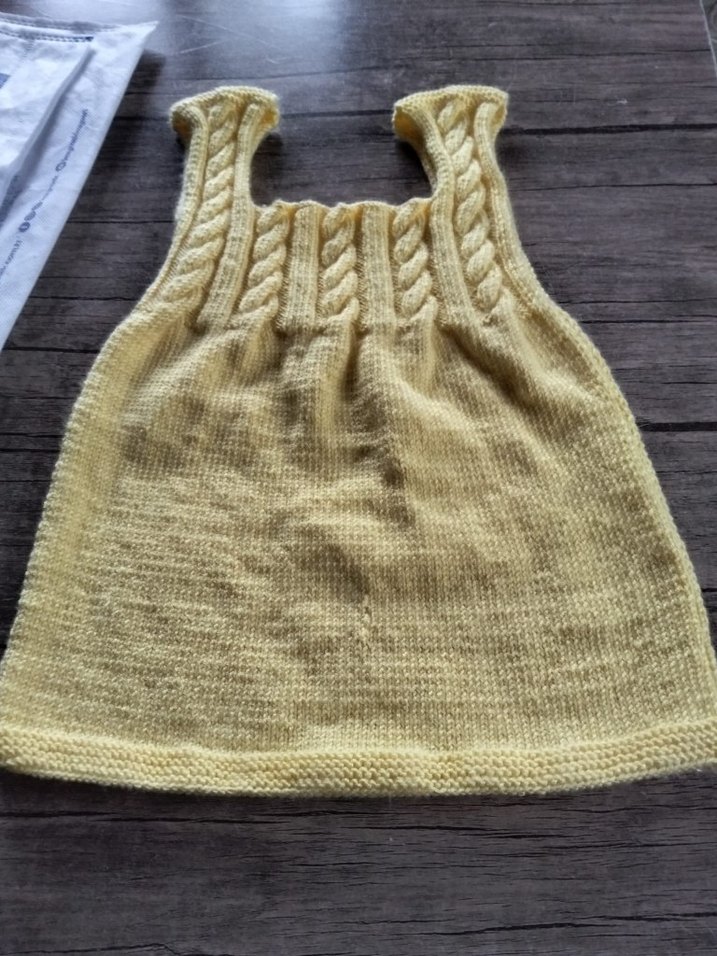 Sarı Örgü Kolsuz kız bebek elbise