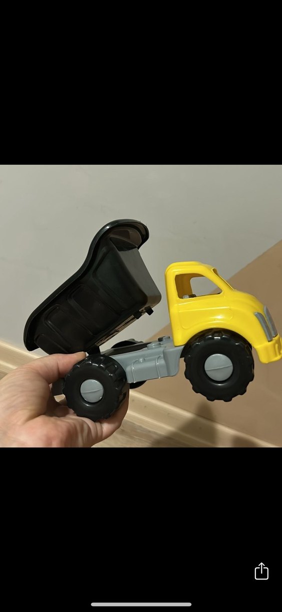 Ürün sıfır hiç kullanmadı Büyük siyah tekerlekleri ve hareketli kasası olan sarı oyuncak kamyon. Çocuklar için dayanıklı ve kullanımı kolay.