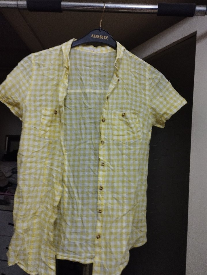 Sarı Pamuklu Düğmeli Kısa Kollu Gömlek