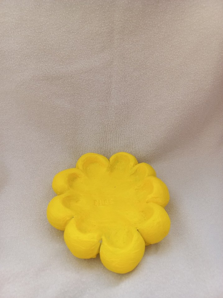 Sarı papatya şeklinde yapılmış seramik. Ortasına istenirse isimde yazılır. İstenilen renkte yapılır.