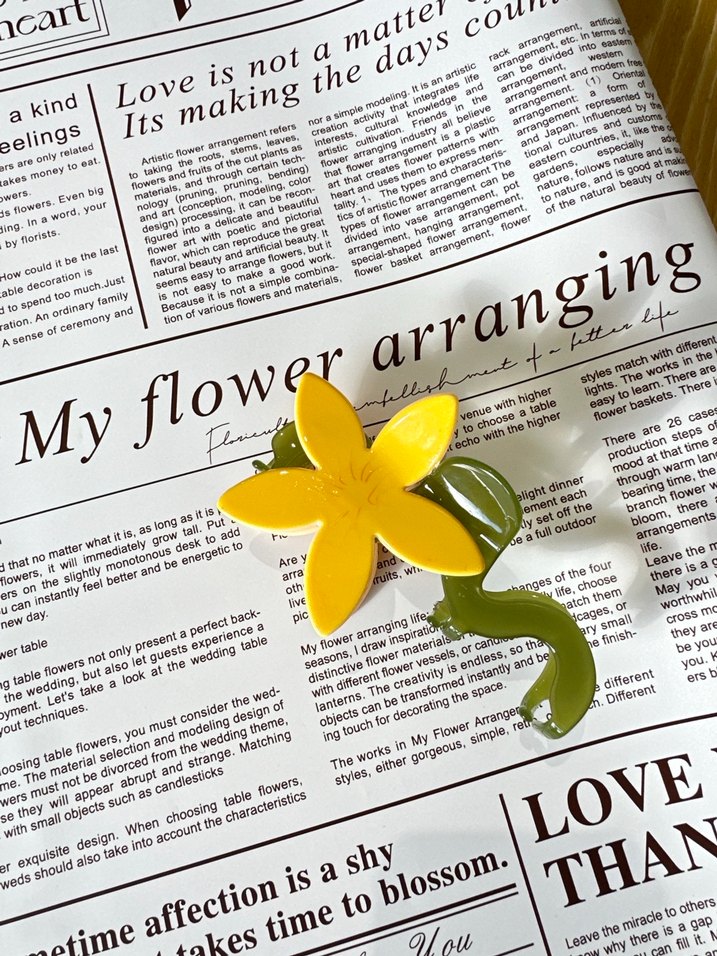 Sarı Parlak asetat Çiçek Saç Tokası