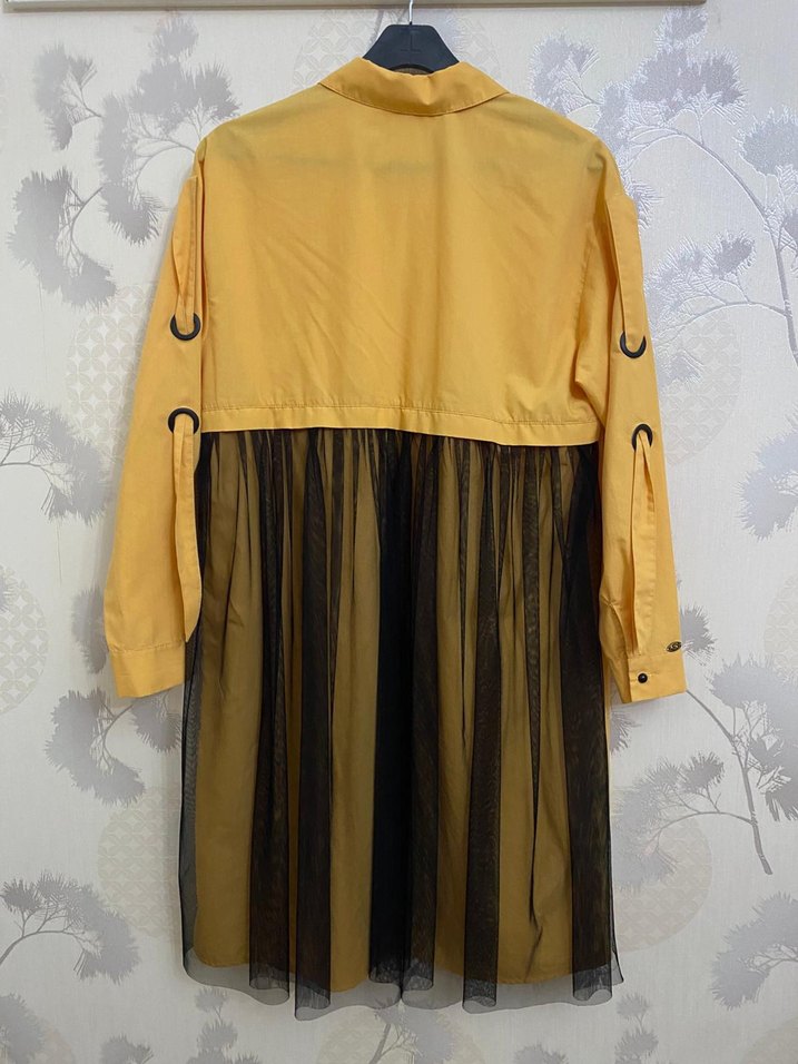 Rengi çok tatlı bir Sarı, kolunda S marka rozeti var, 'SETRMS' in ürünü arkası siyah tül detayı var. Hiçbir lekesi yoktur. Kolu daki siyah halkalar da renk soyulması eskime yoktur, göründüğü gibi simsiyah.Tarz bir gömlek.