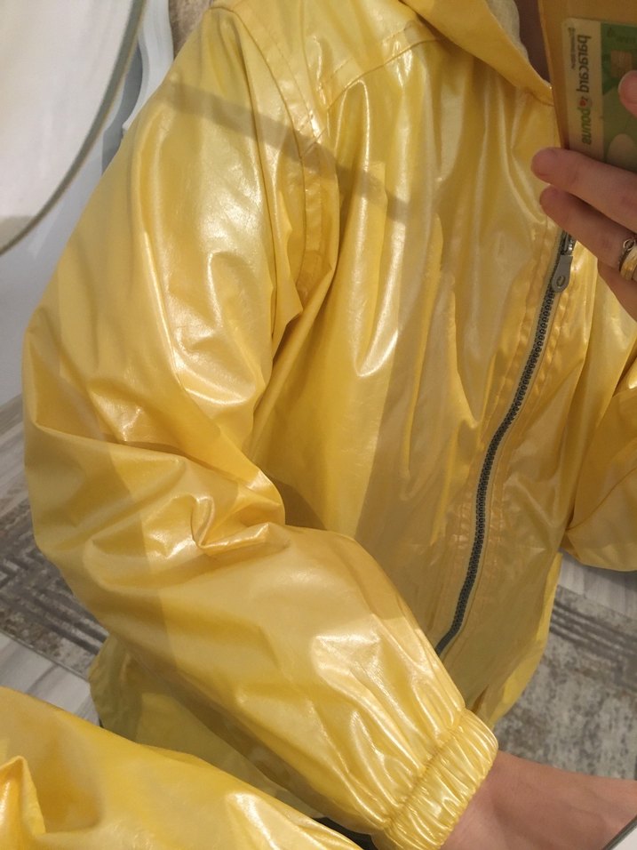 Sarı Parlak Fermuarlı Kadın Yağmurluk