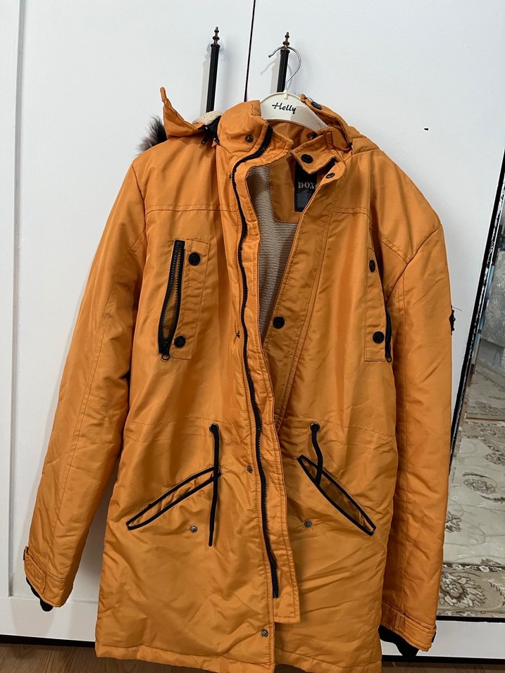 Sarı parlak renkli, fermuarlı cepleri olan, notched lapel yakalı ve bol kesim kadın montu. Uzun kollu, midi boyda, yumuşak ve sıcak kumaştan günlük kullanım için uygundur.