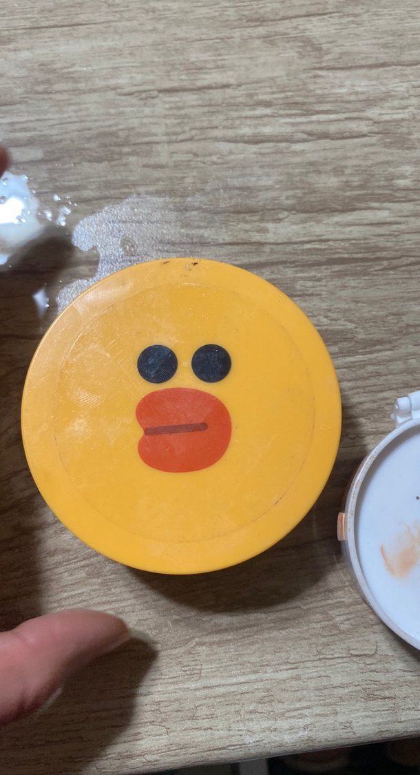 Yumuşak makyaj uygulaması için sevimli ördek yüzü desenli sarı pastel makyaj süngeri.