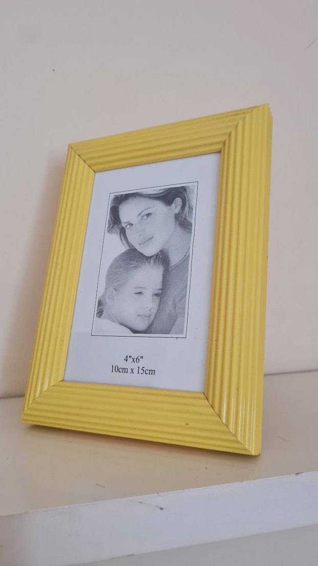 10x15 cm (4x6 inç) boyutunda, dokulu tasarıma sahip pastel sarı fotoğraf çerçevesi. Standart boyutlu fotoğraflar için uygundur ve dekorunuza yumuşak bir dokunuş katar.