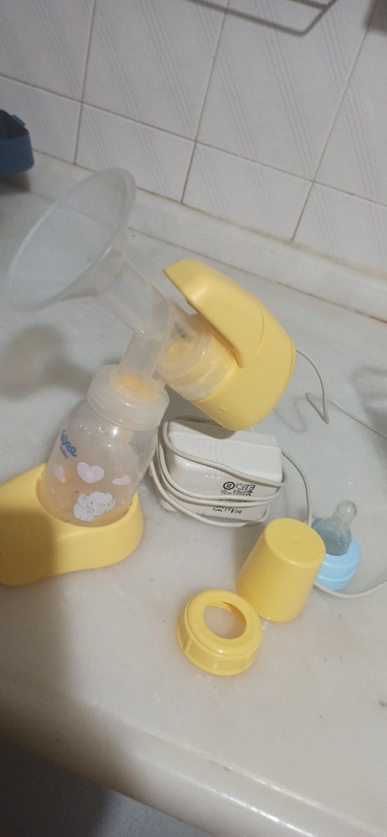 Pastel sarı renkte, kullanımı kolay göğüs pompası, bebek biberonu ve aksesuarları ile birlikte gelir. çok kullanışlı defosuz sıfırdan farksız