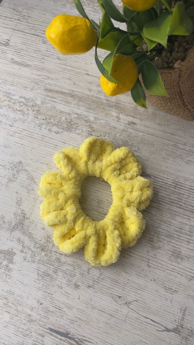 Sarı peluş Fırfırlı Saç Tokası