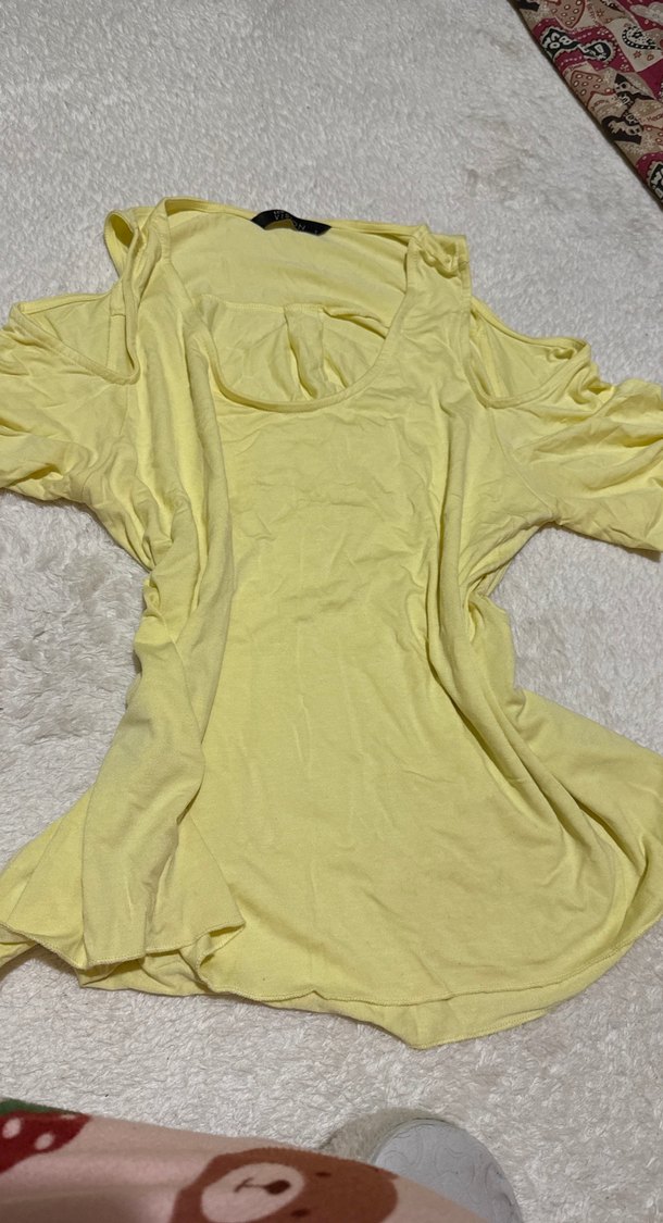 Sarı,kısa kollu, bol kesim bluz Kumaşı yumuşacık bedeni s olsa da salaş ve rahat