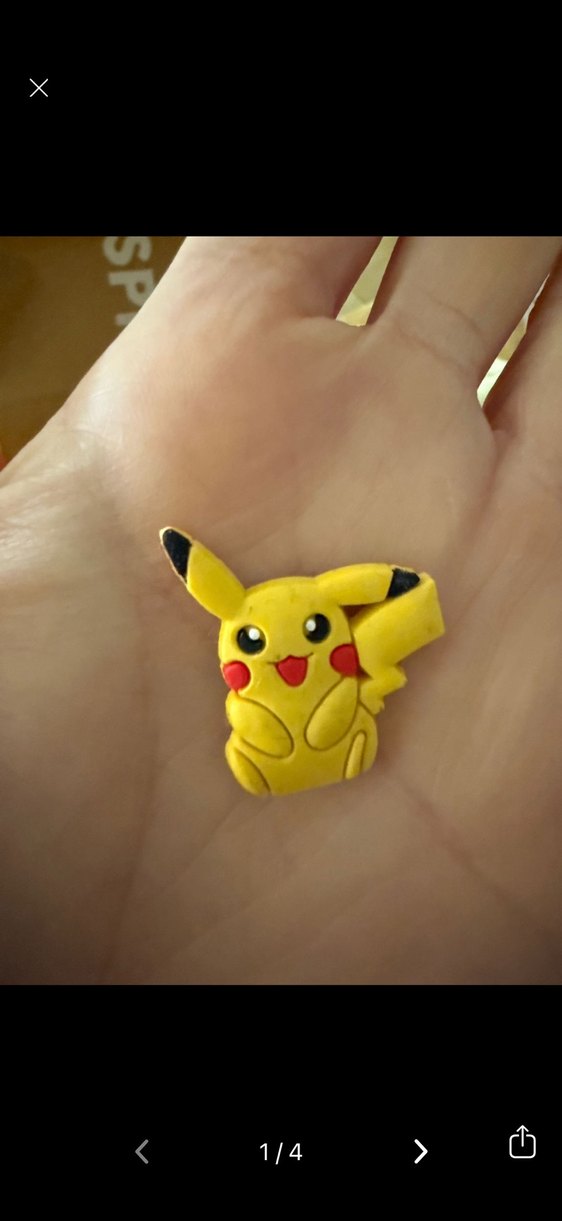 Renkli sarı Pikachu aksiyon figürü, detaylı özelliklere sahip. Avuç içinde duracak kadar küçük ve ikonik tasarımı yansıtıyor. ⚡ Arkası yapışkanlıydı, defter vs için.. ben dolabıma yapıştırmıştım.