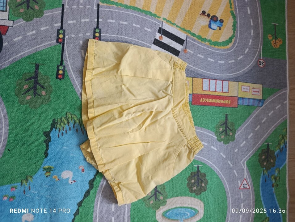 Hafif sarı renkte, pilili ve bol kesim kız çocuk eteği, sentetik kumaştan üretilmiştir, sade ve rahat bir tasarıma sahiptir.