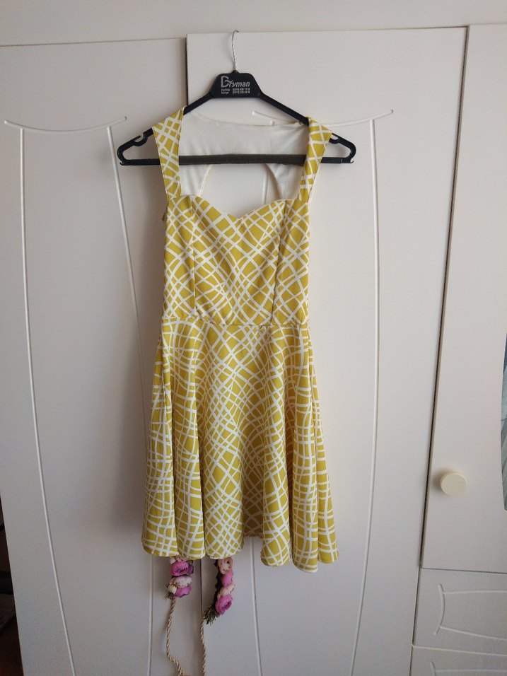 Sarı Pilili Midi Bohem Elbise