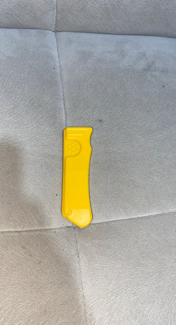 Sarı plastik, kolay kullanım için kompakt ve sade tasarıma sahiptir. Daha iyi tutuş için dokulu bir alan bulunur. ✂️