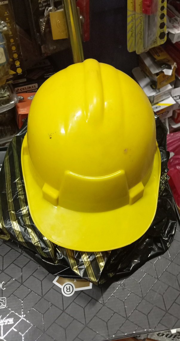 Sarı renkte, dayanıklı plastikten yapılmış, desensiz inşaat kaskı. Minimalist ve sade tasarımıyla şık bir görünüm sunar. ️