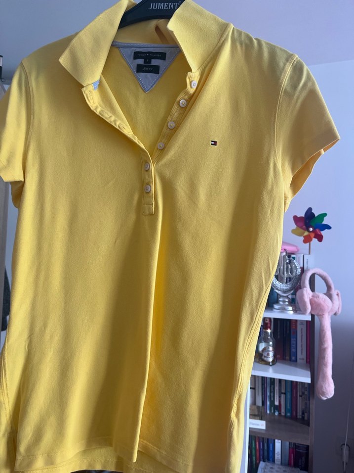 Fıt kesim polo tişört, parlak sarı renkte, yakalı ve kısa kolludur. Pamuk kumaştan olup düğmeli ön yapıya sahiptir.