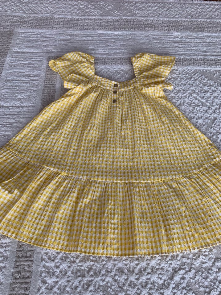 Sarı Pötikareli Fırfırlı Kız Elbisesi