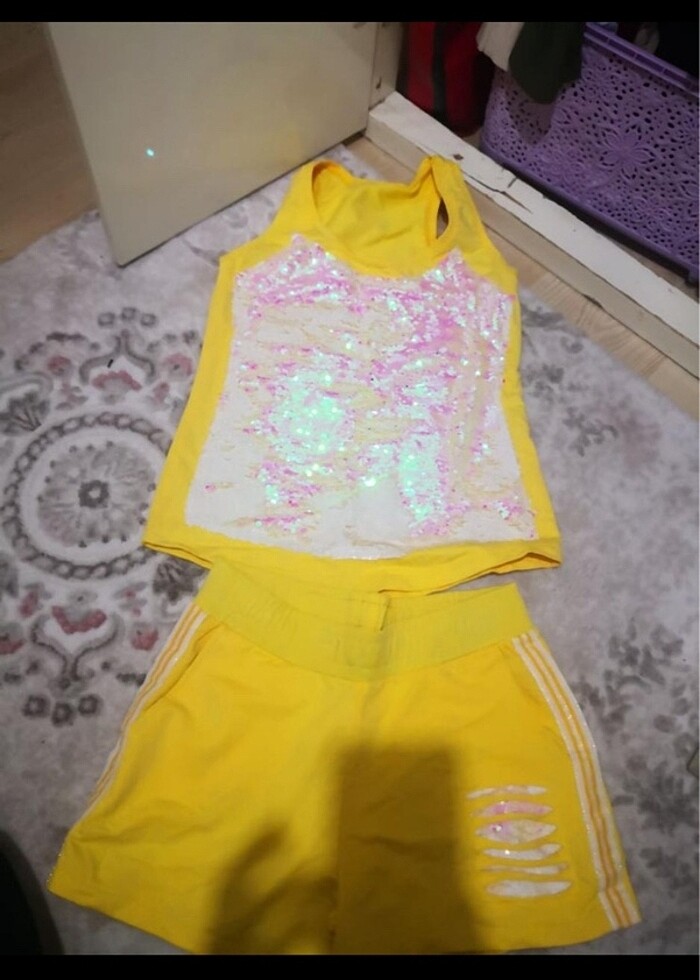 Sarı pullu takım small ve medium uyumludur hic kullanılmadı