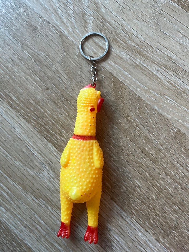 Püsküllü, sarı tavuk figürlü anahtarlık. Bohem ve minimalist tarzlara uygun, retro ve eğlenceli tasarım.