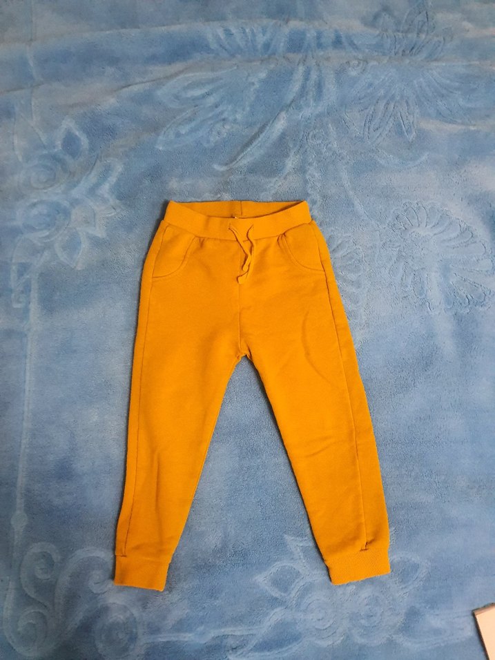 Sokak tarzı, rahat kesim sarı erkek çocuk pantolonu. Yumuşak ve sıcak kumaştan, lastikli bel ve ceplerle rahat kullanım sağlar.