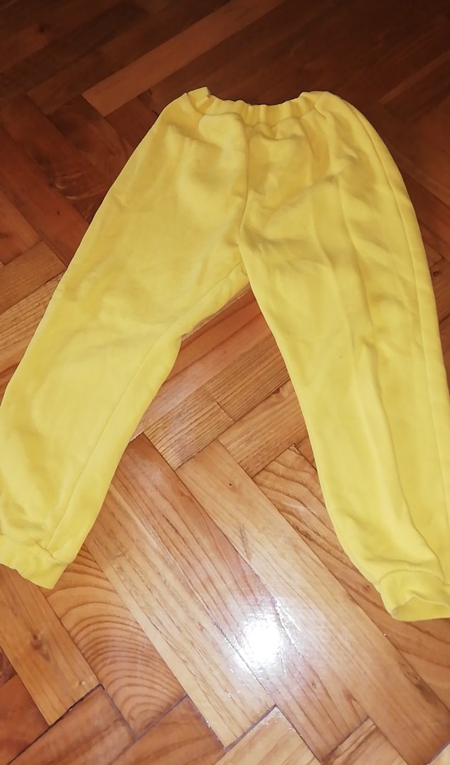 Yumuşak ve sıcak kumaştan yapılmış, bol kesim sarı kız eşofman altı. Parlak yüzeyi ve sade tasarımıyla sokak modasına uygun.
