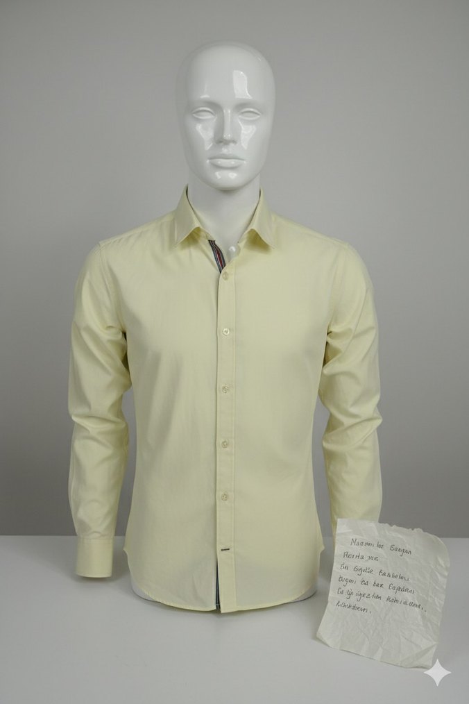 Sarı renkte, regular fit, uzun kollu ve yakalı erkek gömleği. Sentetik kumaştan üretilmiş, ofis ve günlük kullanıma uygundur.