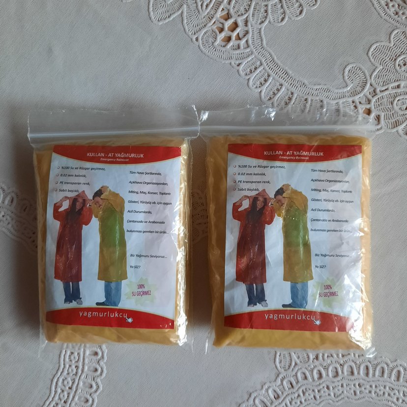 Sarı renkli, ince, tek kullanımlık yağmurluk