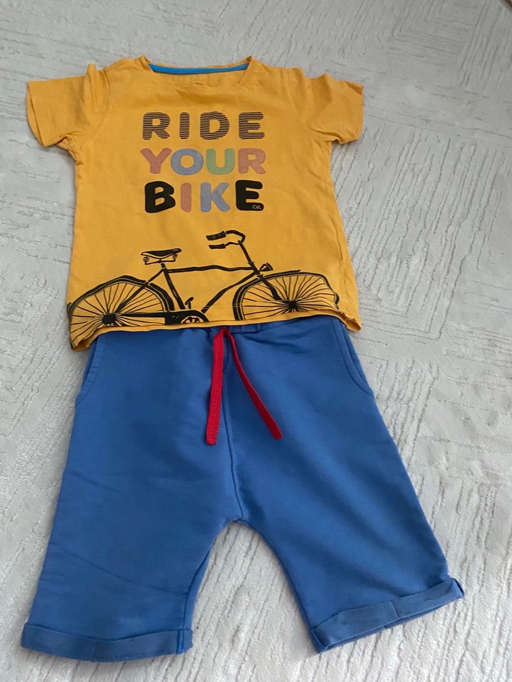 Sarı kısa kollu üstte renkli baskılı "RIDE YOUR BIKE" yazısı ve bisiklet deseni bulunur. Mavi pantolonla tamamlanmıştır. Üstte çıtçıtlı kapama vardır.