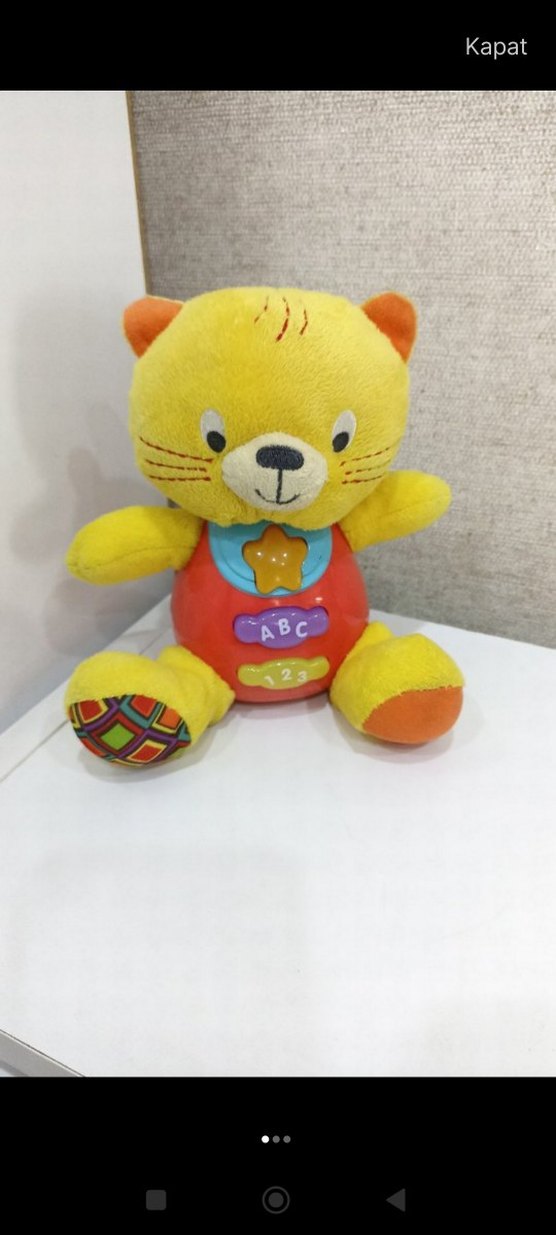 Canlı sarı renkte, ABC ve 123 butonlu eğitici peluş oyuncak. Yumuşak dokusu ve eğlenceli tasarımıyla çocuklar için uygundur.