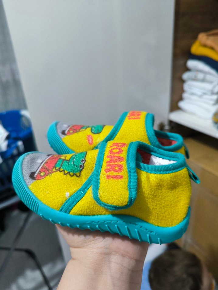 Sarı renkli, baskılı desenli erkek çocuk terliği, sıcak kumaş ve lastik tabanlıdır. Velcro bantla kolay kullanılır, streetwear tarzındadır. birkaç kac kez giydi bebeğim sürekli çıkardığı için kullanmadik yepyeni duruyor