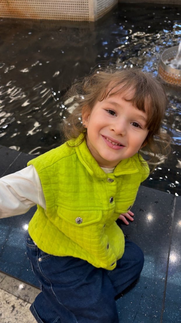 Sarı renkte, yakalı ve bol kesim kız çocuk yeleği. Yumuşak ve sıcak kumaştan, puff detaylı ve renkli batik desenlidir. Kolsuz ve sokak stiline uygun. Sadece yelek