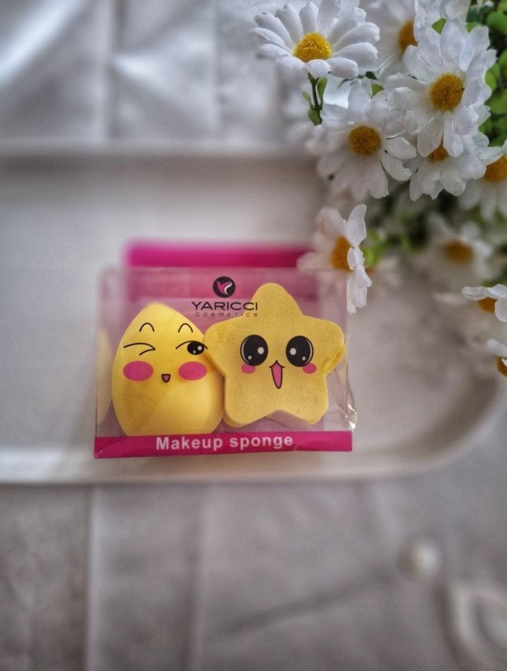 renkli ve sarı tonlarda, sevimli tasarımlı makyaj süngerleri, pürüzsüz fondöten uygulaması için.